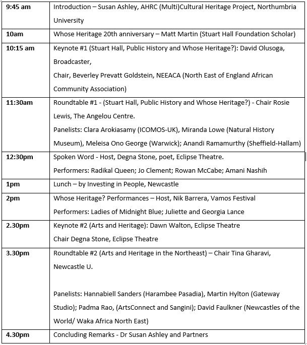 This free, one-day event was the culmination of the (Multi)Cultural Heritage project. Featuring internationally renowned Keynote speakers David Olusoga (BBC broadcaster and public historian) and Dawn Walton (Eclipse Theatre Artistic Director), plus panels and performances that reflected on Stuart Hall’s project to challenge inequalities in the culture and heritage fields.
