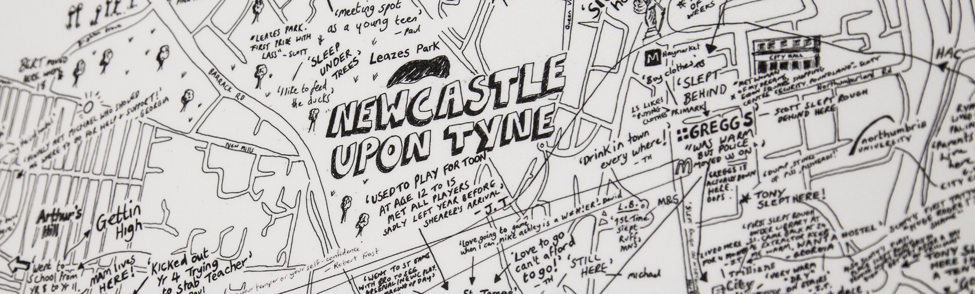 Michael Rowe, Head of Social Sciences and Languages, Northumbria University, said: “The exhibition uses maps of the city to illustrate how homeless people experience life in Newcastle. The maps bring social science to life in really exciting ways and help engage the public in a way that other forms rarely do. I’m delighted that Adele and Oliver have won this award, the project is truly ground-breaking”.
