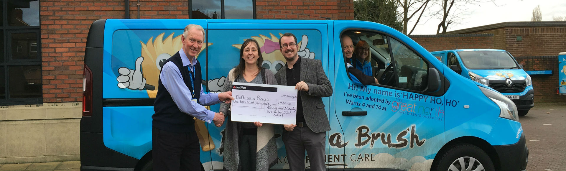 “These are among the most important people in our training and these people shaped us into the professionals we have become. It was this that inspired the class of September 2013 Nursing and Midwifery at Northumbria to pass on £1,000 to Daft as A Brush as a thank you for the support we have had throughout our training.”