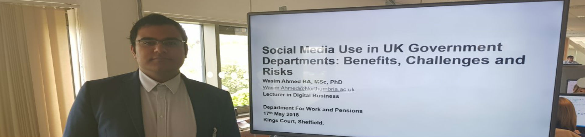 Dr Wasim Ahmed from Newcastle Business School has delivered a talk to the Department for Work and Pensions (DWP) government office on social media use.