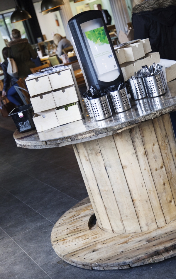 In addition to the increased the amount of seating, we changed the format of the counters to allow for a much quicker service and opened up the space as an area that can be used all day. The food offer has also been enhanced with the addition of an authentic pizza oven, a rotisserie grill, a salad bar and interchangeable hot food counters to give flexibility and choice up to date with the latest food trends.