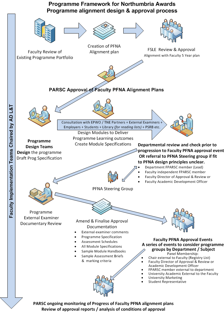 This section includes information about the Programme Framework for Northumbria Awards (PFNA), Northumbria's process for approving and modifying programmes and modules as well as information about the development and approval of collaborative ventures partners and programmes.